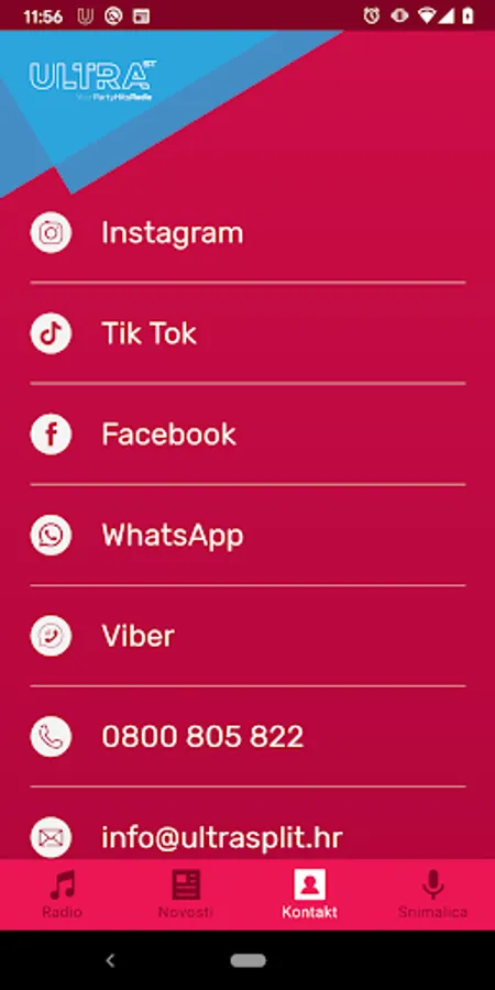 Through the application you can contact us in five different ways (Whatsapp, Viber, phone, mail or by recording a voice message).