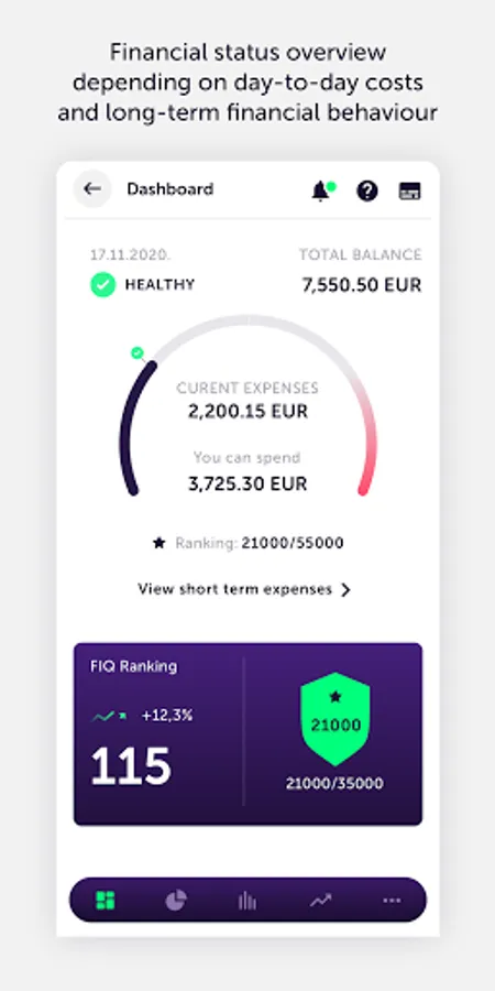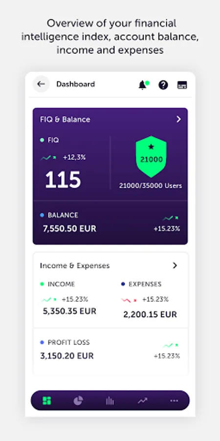 F-IQ is next generation personal finance manager. It provides users with cool features like automatic transaction categorization, detailed insight of income and costs structure, automatic goal setting, calculation of short term and long term financial parameters, prediction of future financial situations, simulations and more. F-IQ will help you to better understand your financial situation and stimulate your responsible financial behavior.