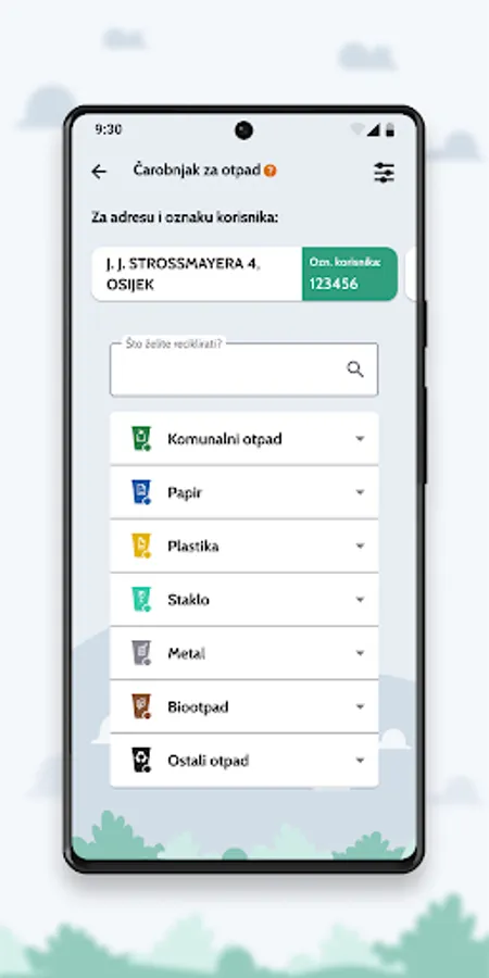 * "Recycling yards" - finding the nearest recycling yard according to the user's location, information on working hours and types of waste that can be disposed of