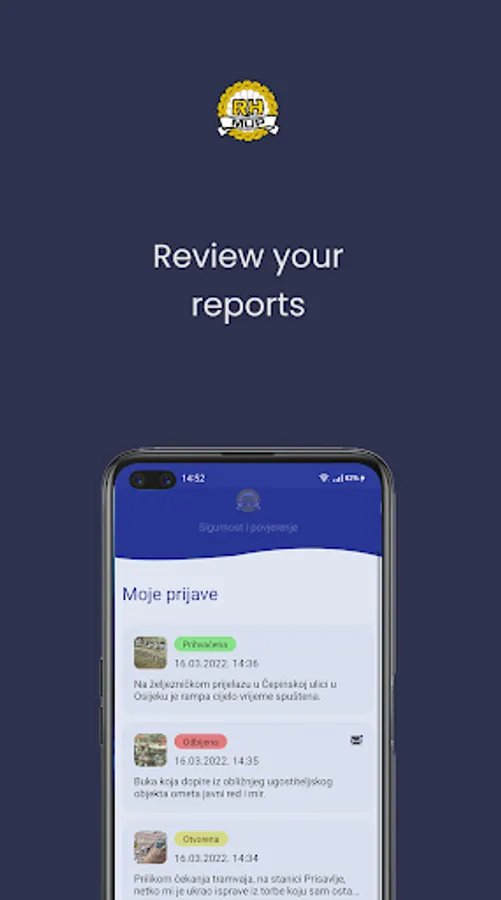 The reports sent are stored in the cell phone and their status can be tracked via the application.