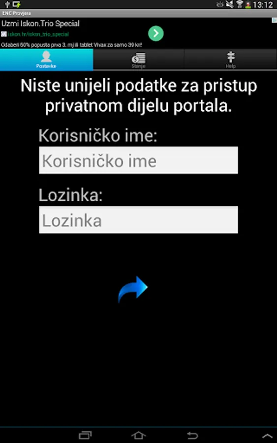 On the first screen you need to enter a user name and password that you typed in the pages of HAC (https://prodaja.hac.hr).
