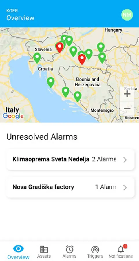 Get notified about new alarms in your system and react on time. Acknowledge new alarms and, after fixing the cause of the problem, resolve them right in the app.
