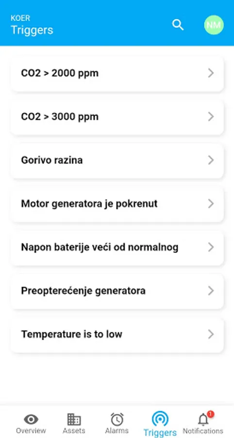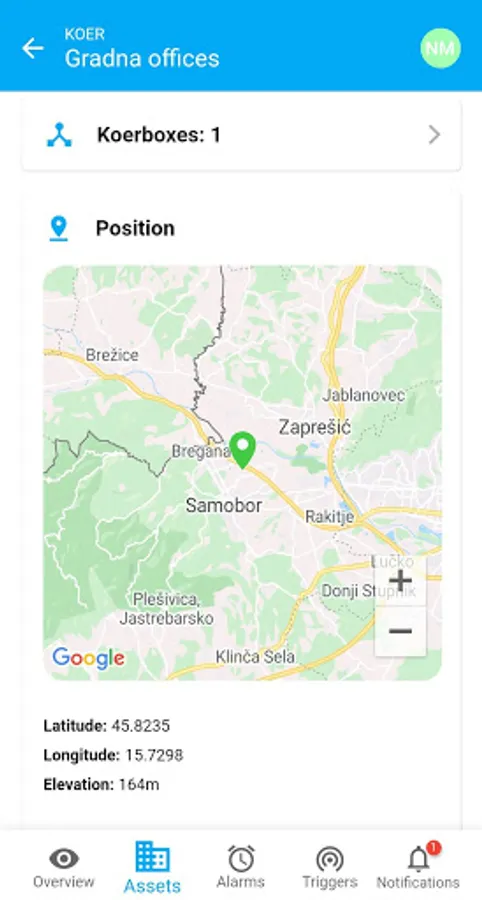 You can view your Assets, Elements, Koerboxes, and Triggers and also in-app notifications informing you about any new important events.