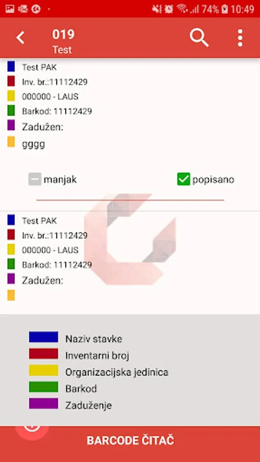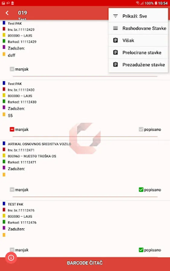 An application that allows users to process inventory lists of fixed assets spent through the ARGOSY ERP business system through a simple interface adapted to most android smartphones. Ability to use most smart phones and tablets as classic barcode readers.