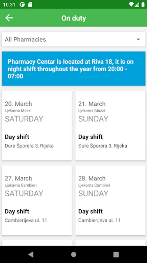 This is a mobile application of the Jadran pharmacy. Here you will find all the information about the locations of pharmacies, working hours, on-duty pharmacies and current discounts. The application also gives you the opportunity to visit the Facebook profile and youtube channel with educational videos.