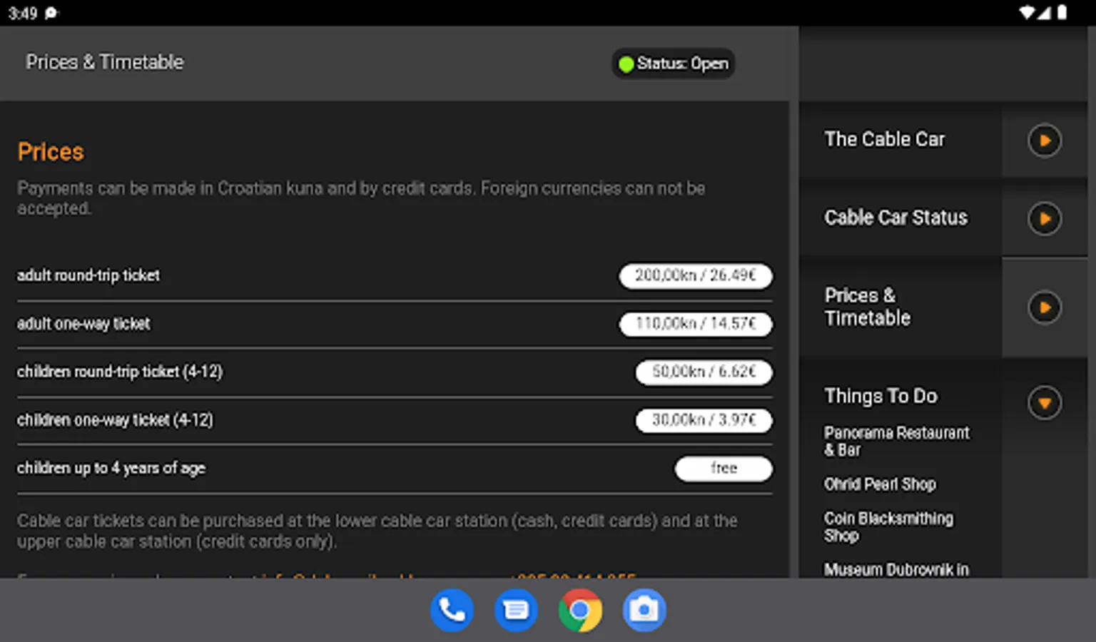 The GoCableCar app allows you to receive real-time status updates from the Dubrovnik Cable Car and offers key information about the cable car and activities at and around the upper cable car station.