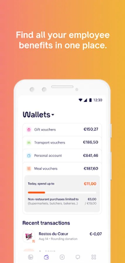- The card that makes it ultra-easy to spend all your employee benefits: Meal vouchers, gift cards, mobility vouchers, and even your personal money.