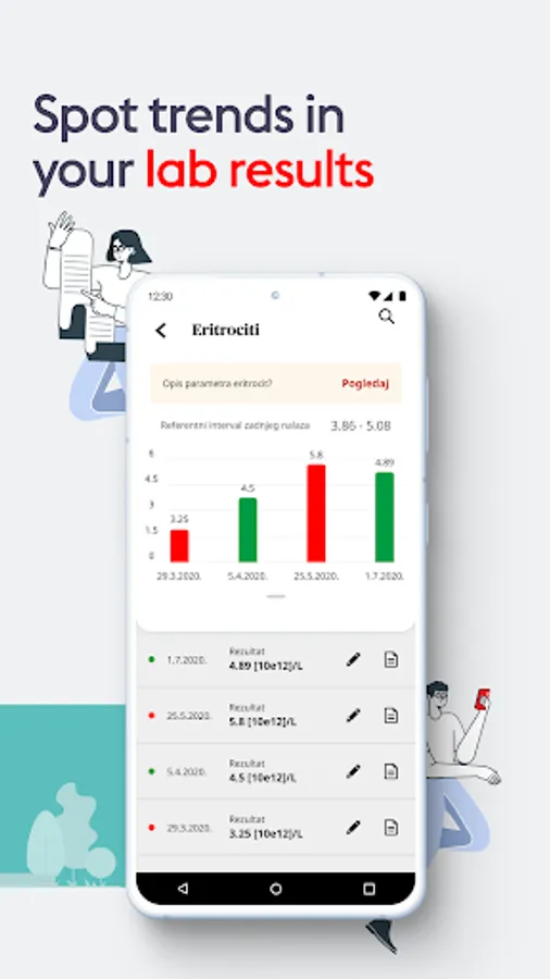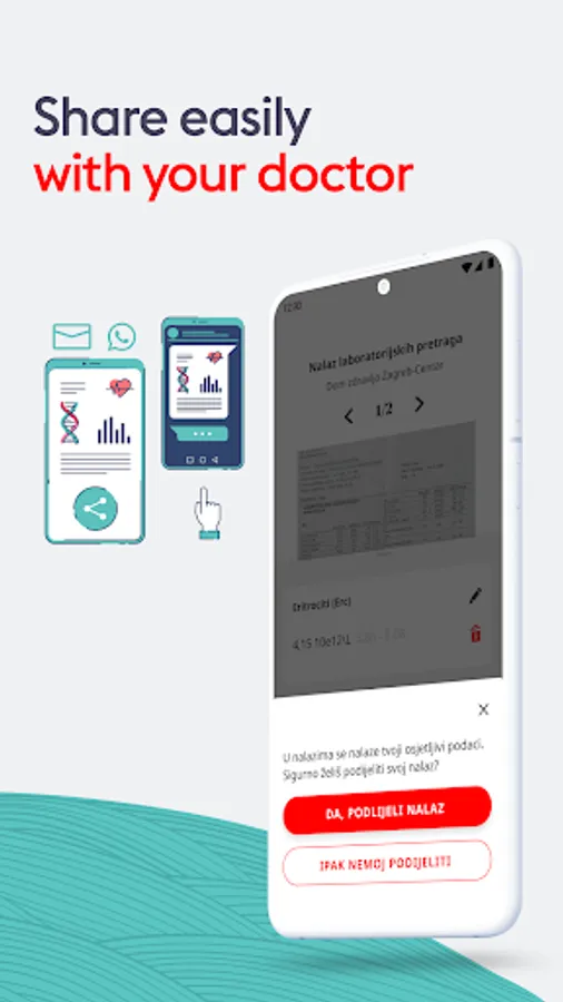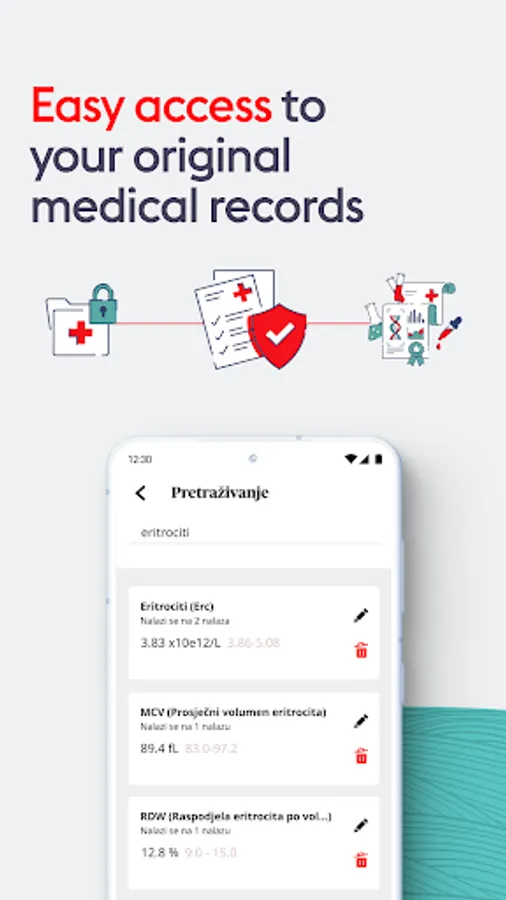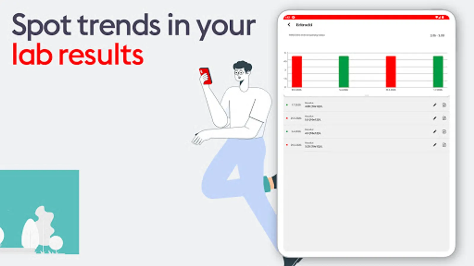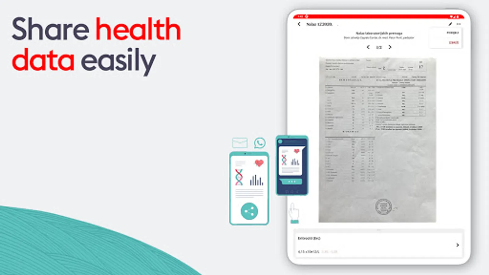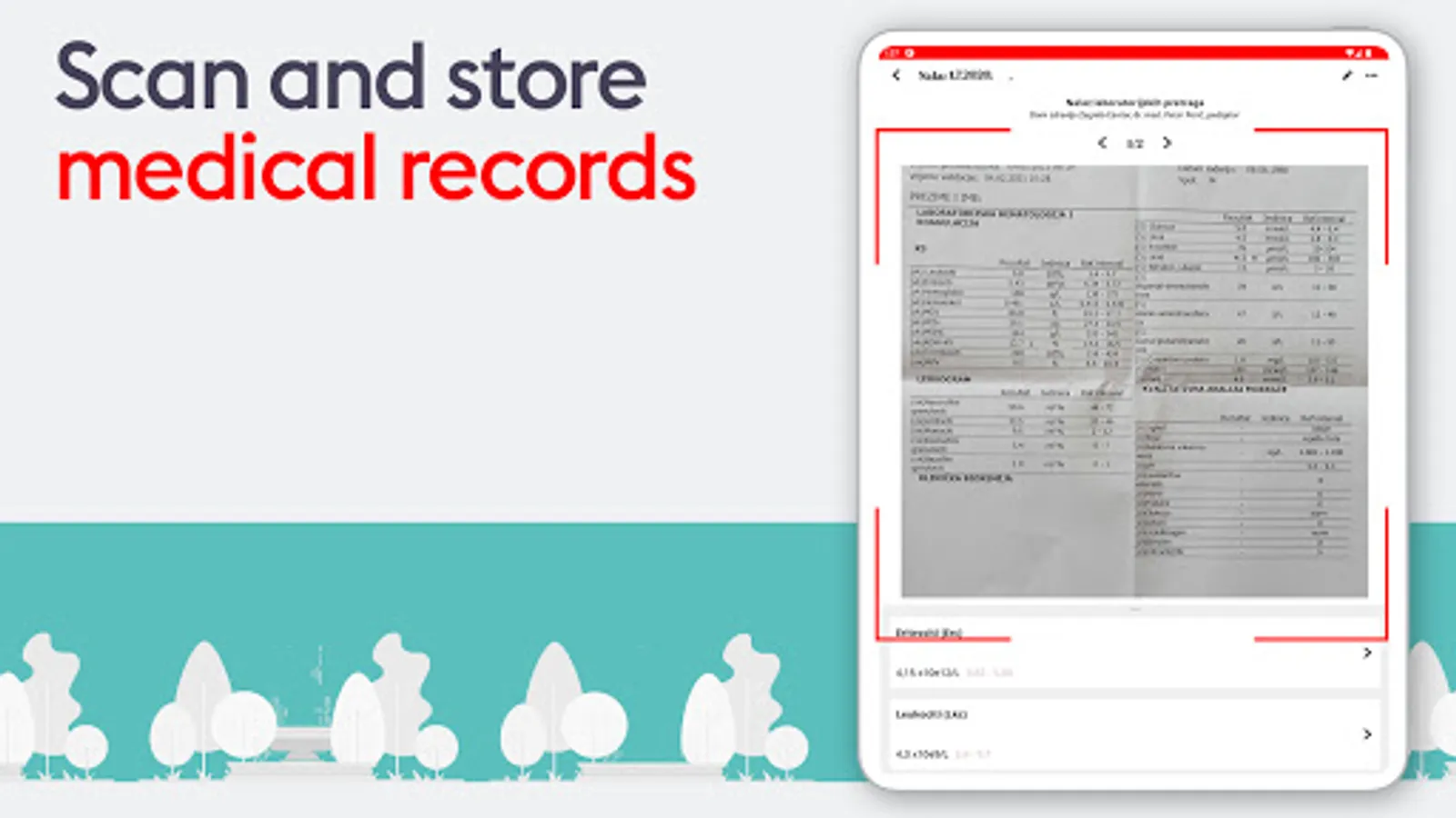 Scan any printed medical record using your phone camera or upload pictures or files from your mobile device. The app will read and recognize the scanned data from your records and store it alongside the original image. Entered data can be quickly reviewed and edited by adding medical institution, physician’s name, diagnoses, or lab test results. Recognized laboratory components are stored alongside reference ranges and visualized as easy-to-use graphs showing value discrepancies.