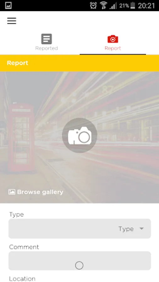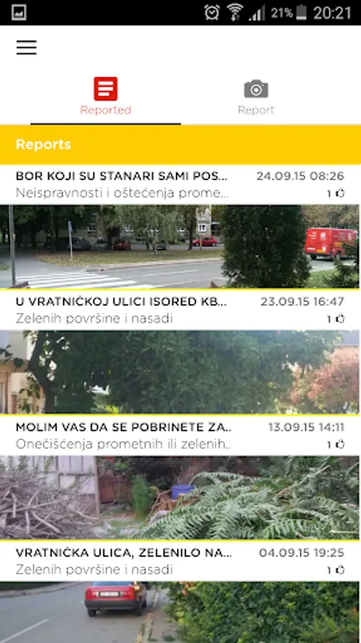Download Cityhub application on your smartphone or tablet. You can log in as an anonymous user or using Google or Facebook application. The application works on the principle that when a user takes photographs problem (illegal parking, graffiti on the walls, trash in the street ...) with geolocation, which is taken from the device, the problem of the application in the cloud.