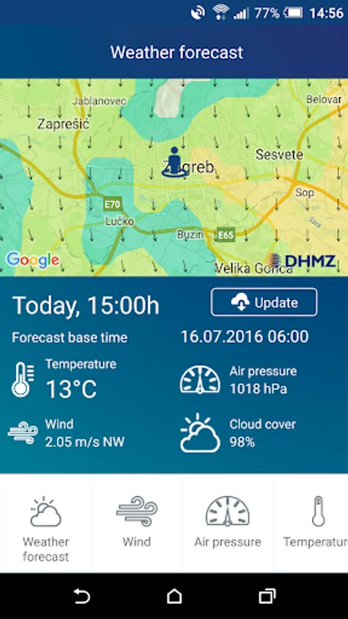 • weather forecast for mariners (air temperature, wind speed and direction, air pressure, waves, cloud cover)