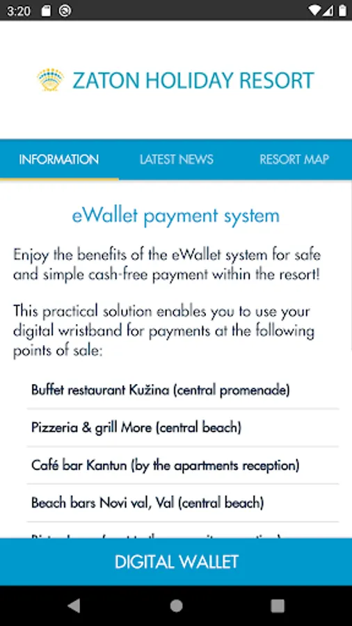 In addition to cashless payment, the app enables you to add funds to your eWallet account and to familiarize yourself with the resort's offer.