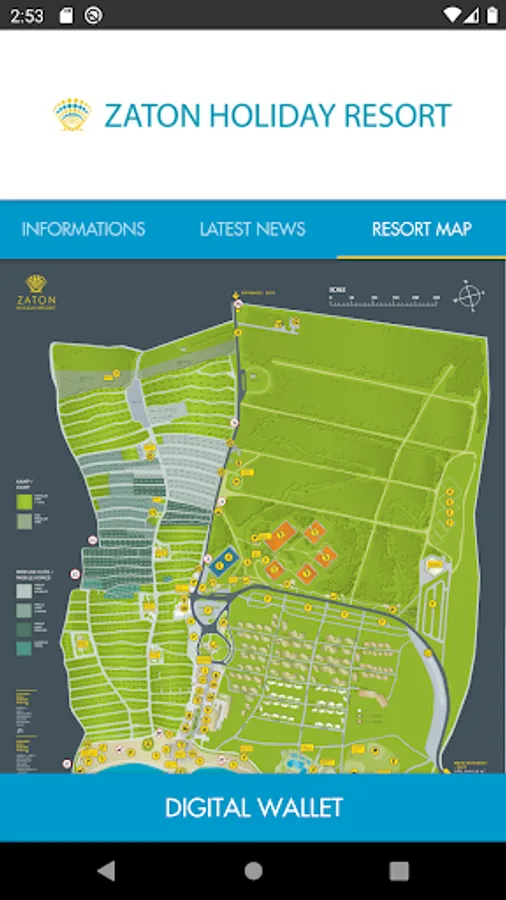 The app also includes a resort map with points of interest as well as various information relevant for your stay.