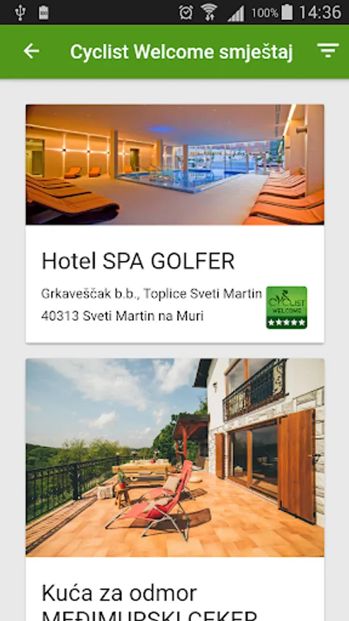 The application offers a list of accommodations that meet the quality standard of accommodation facilities Cyclist Welcome. See the offer of accommodation facilities with a view categories Cyclist Welcome standards.