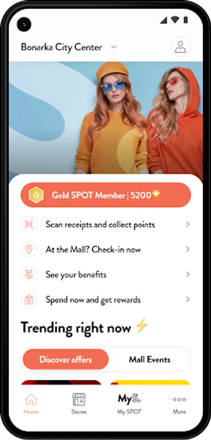 • My SPOT loyalty program: earn loyalty points for purchases made in our shopping centers. Scan the receipt and get loyalty points.
