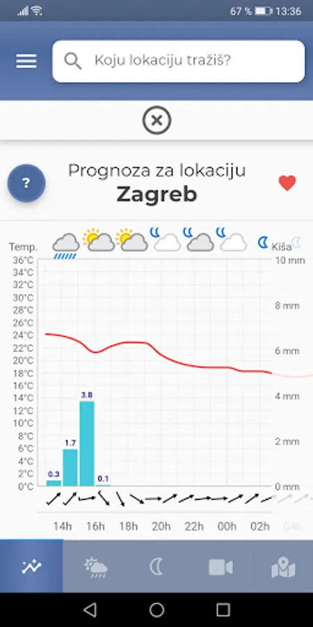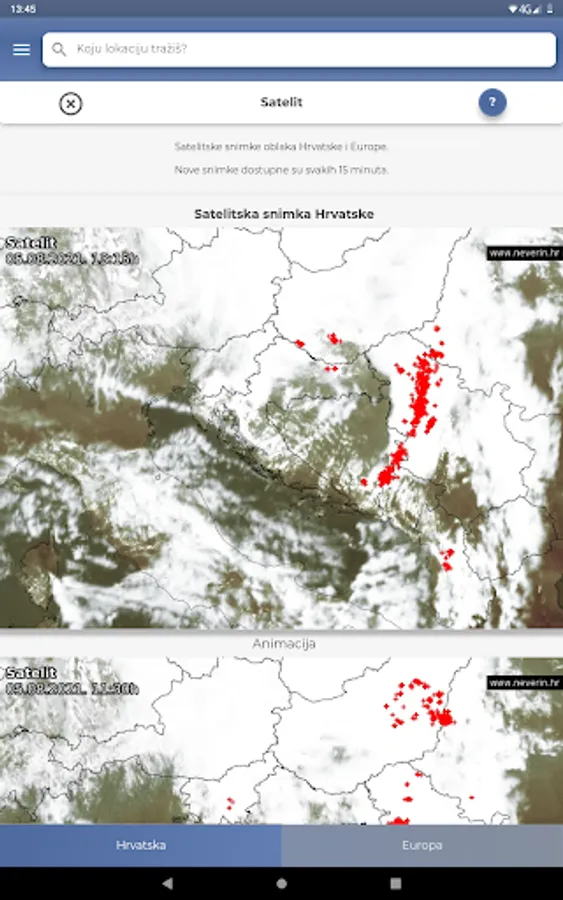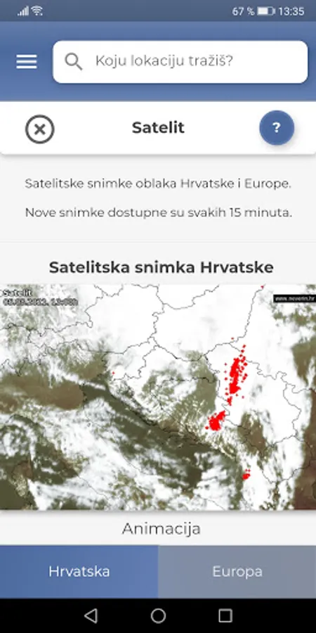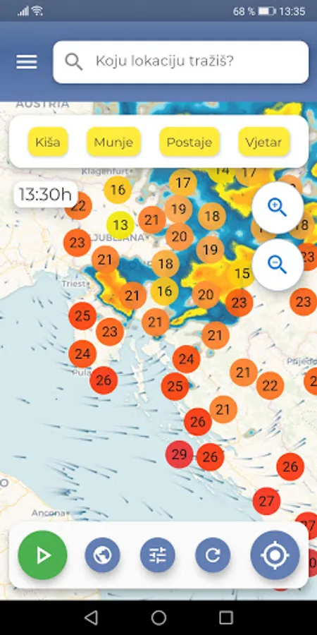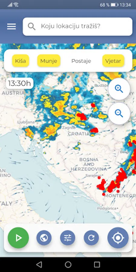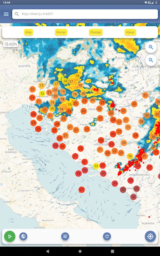 Follow the movement of clouds, precipitation and storms in real time and the weather forecast for all locations in Croatia and the surrounding area.