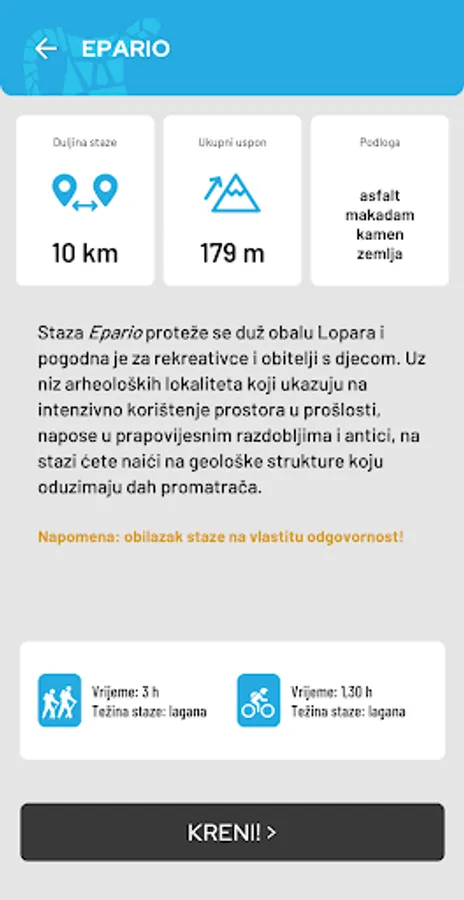 Rab Archaeological (T)races application guides you through pristine island landscapes showcasing valuable archaeological, sacral, and ethnographic heritage dating from the prehistoric era to the beginning of the 20th century. Archaeological sites have been presented along 33 info – points connected by 40 km of educational trails spanning across Kampor, Lopar, and Supetarska Draga, some of which along protected landscape areas. Certain sites lie hidden layers beneath your feet, whereas others stand tall in structures that have sturdily been defying the tooth of time for centuries. Besides navigating you through the trails and providing information on the sites, the application reveals numerous interesting facts and legends surrounding the island and its life through time. Characters brought to life in the virtual world and their tales from long ago, audio guides, extended reality, educational games and quizzes will make your exploration of the island an unforgettable adventure. The application is available offline to serve all nature and culture aficionados, on foot or by bikes. Which trail you should take is entirely up to you! Special rewards await the most successful at the end of their path.