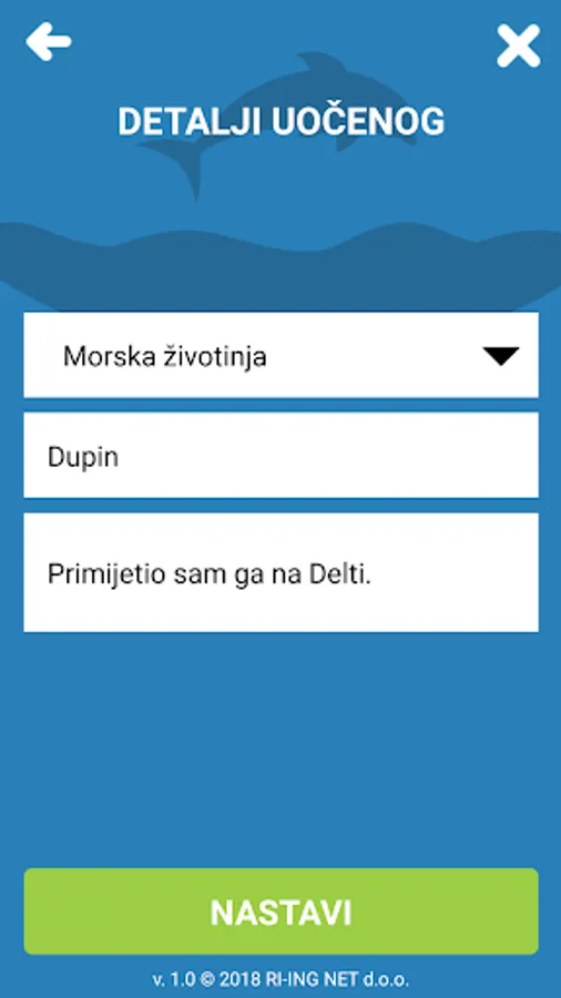 The purpose of using the application is quick mutual information and education of citizens as well as the effective operation of the responsible departments and experts in solving potential problems in protecting the Adriatic Sea. Mutual transmission of information creates a more complete picture of the state of biodiversity and trends of possible dangerous species.