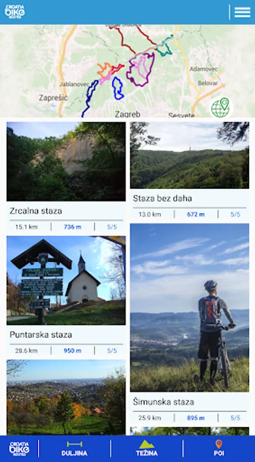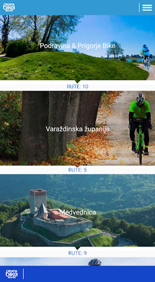 Croatia Bike Routes brings together the official cycling routes of Croatia. The app's overview provides a simple way to select the most suitable route on the map or via the map view.