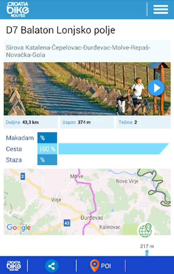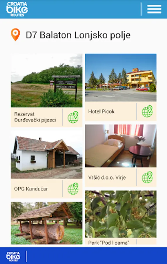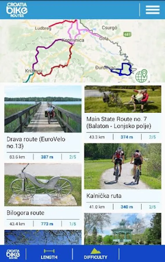 Prigorje i Podravina Bike Routes brings together the official cycling routes of Koprivničko-križevačka County. The app's overview provides a simple way to select the most suitable route on the map or via the map view.