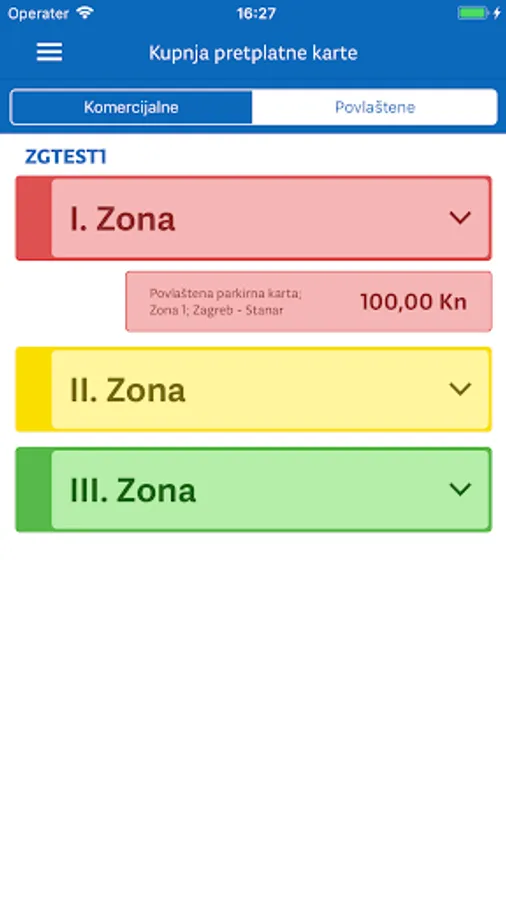 Application ZgPark for purchase, payment and payment of parking tickets in public parking lots and in public garages (Rib, Petrinjska, Lang Square).
