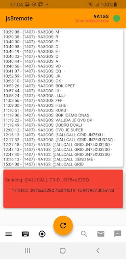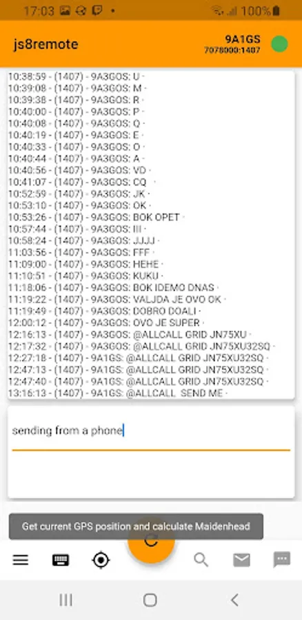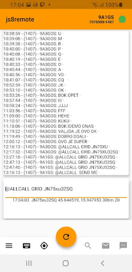 Tapping on location icon gets a current location from a device and populates text box area. You can remove some of the chars from the grid locator if you want to send less precise location. Please delete characters in pairs.