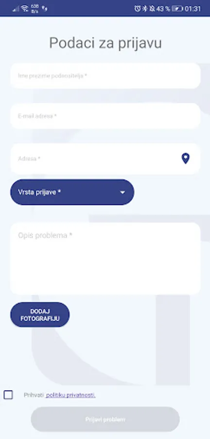 The application allows users to communicate with the municipality in such a way that users have the opportunity to report problems as well as ask questions.