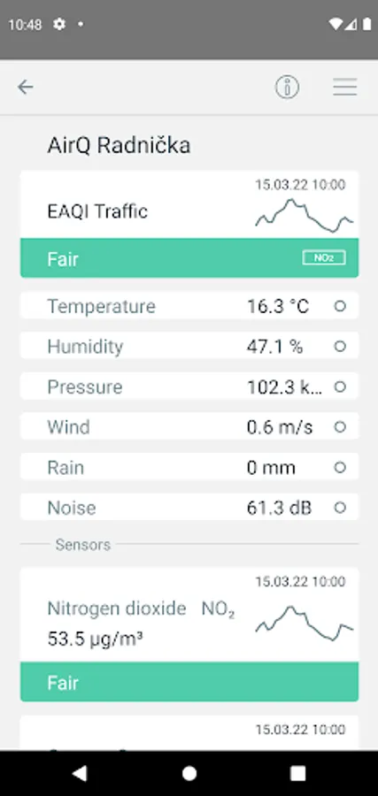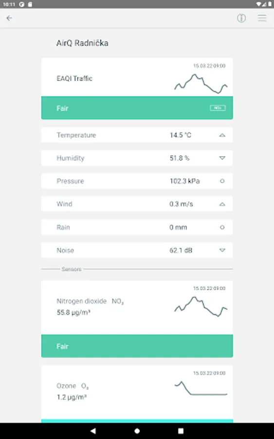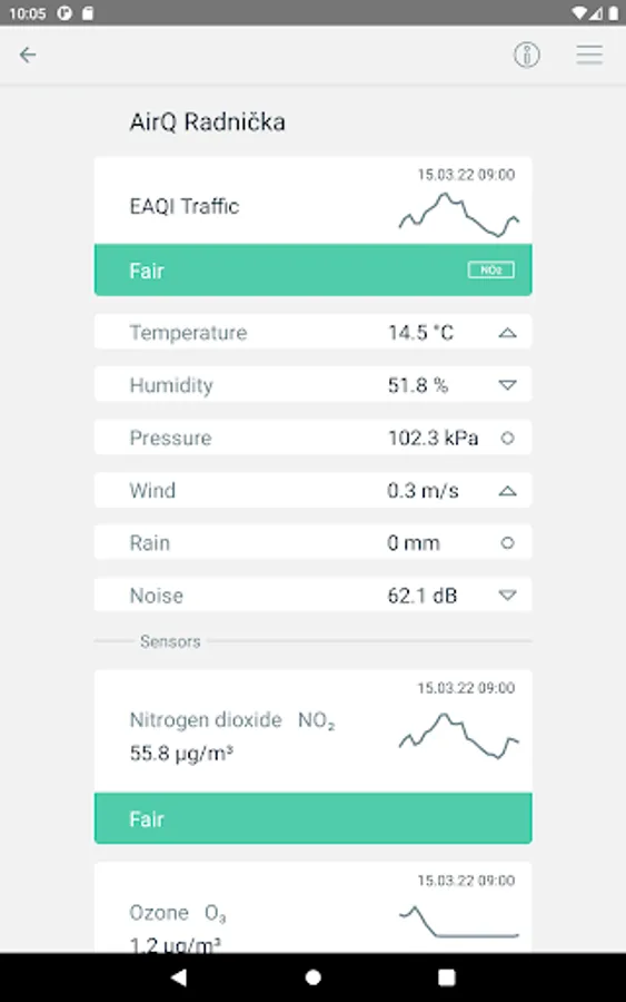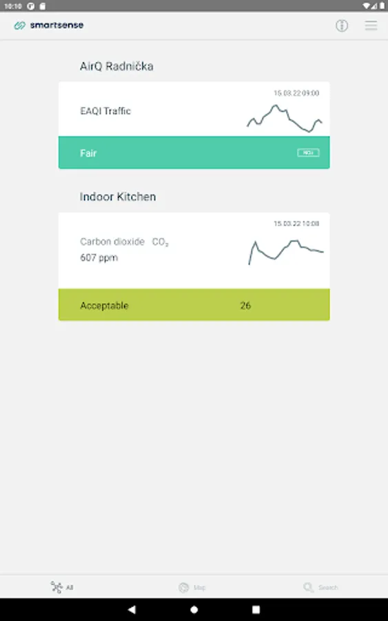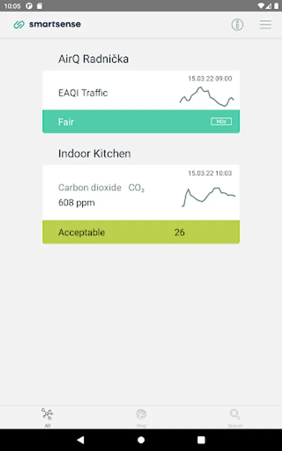 Sensees application connects to the smart sensor platform for monitoring multiple air quality parameters in the indoor and outdoor environment. From relative humidity, temperature and CO2 levels in indoor facilities to additional measurement of atmospheric pressure, CO, NO, SO2, O3 and airborne particles, we offer insight into the air quality around you. Presented air quality parameters are measured by Smart sense stations. For login use username and password provided with your station.