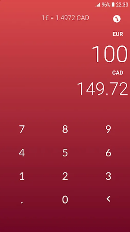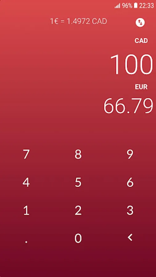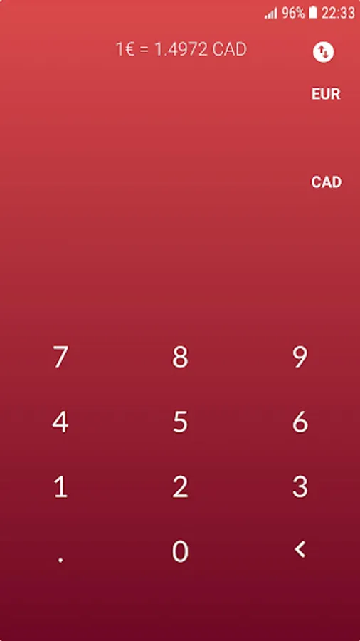 An easy to use app for converting Euro to CAD and CAD to Euro. This app checks every day for the latest exchange rates and applies them to the converter.