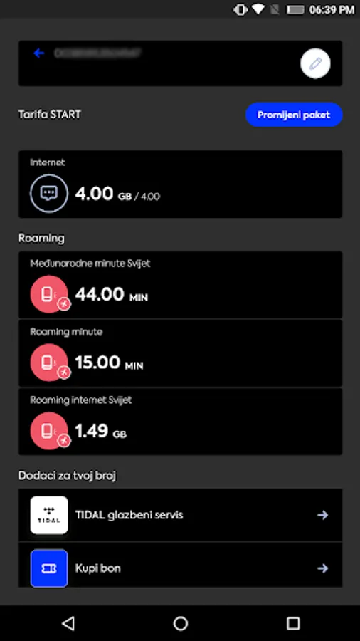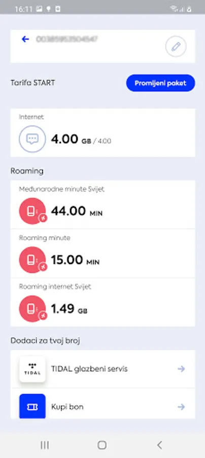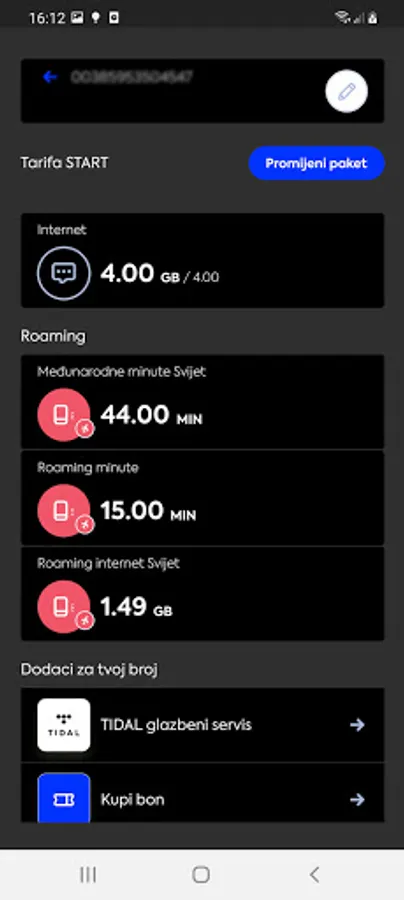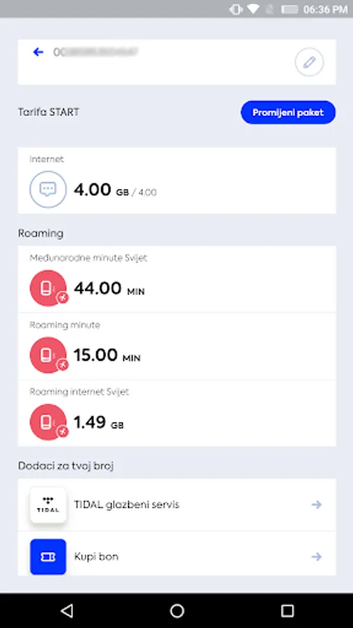 - check the remaining minutes, messages or data traffic in the package or additional option