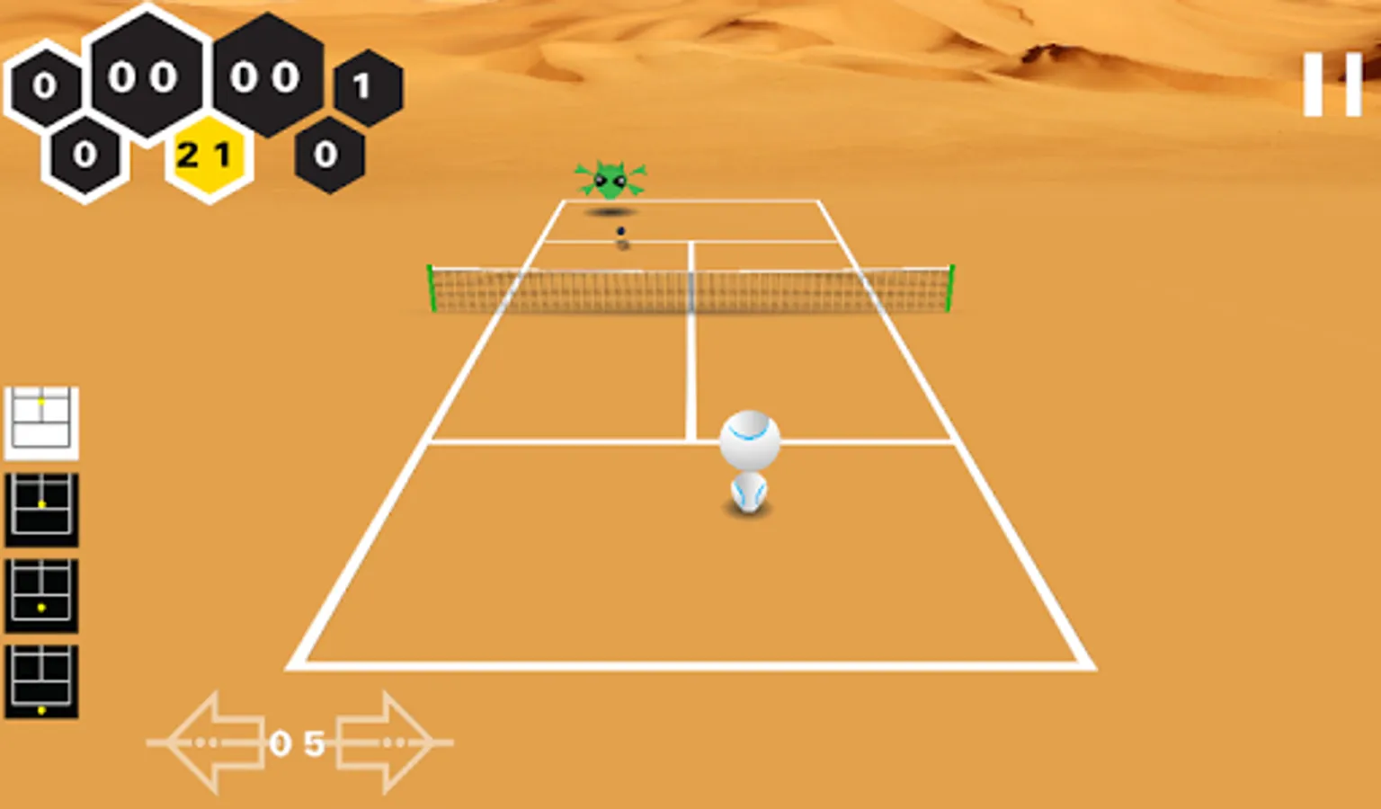 Alien Tennis, game is tennis, located in Alien Tennis realm. Those aliens are your opponents, and they claim that they are best tennis players. Beat all of them and be first in pyramid. Prove them wrong! This simple tennis 3D game has fluid physics and gameplay with fast and simple play controls.
