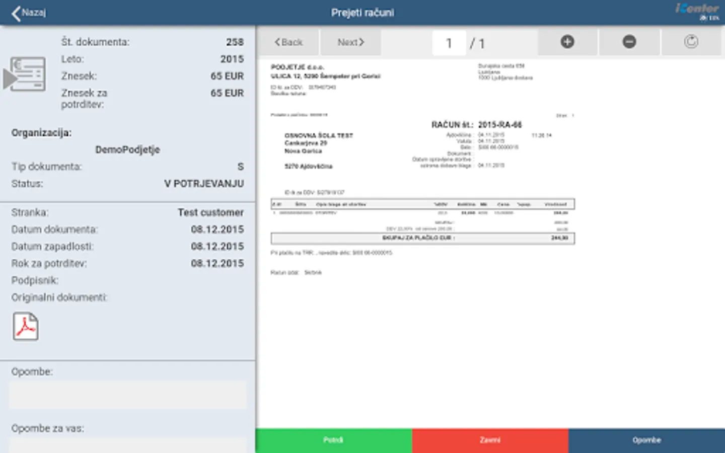 After confirming the invoices issued and received several staff happens to exceed the payment deadline, which has a negative impact on business with suppliers. The solution Mobile certifying documents can confirm accounts outside your office, for example, with terrain or in his absence.