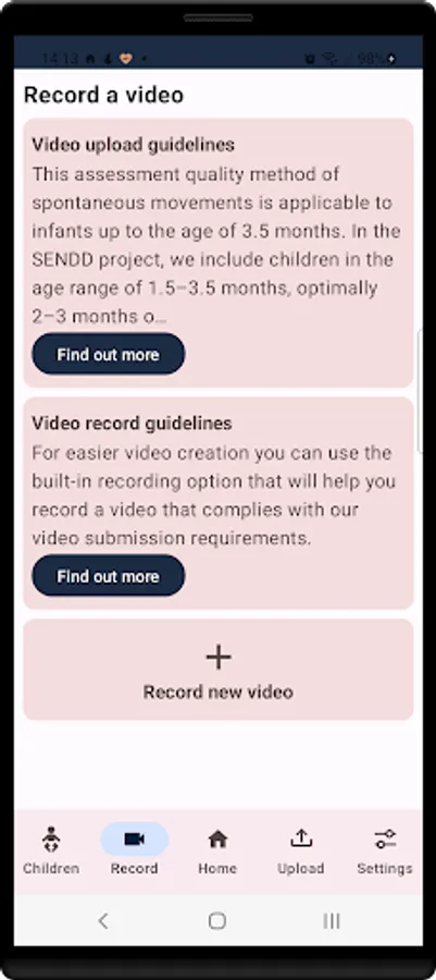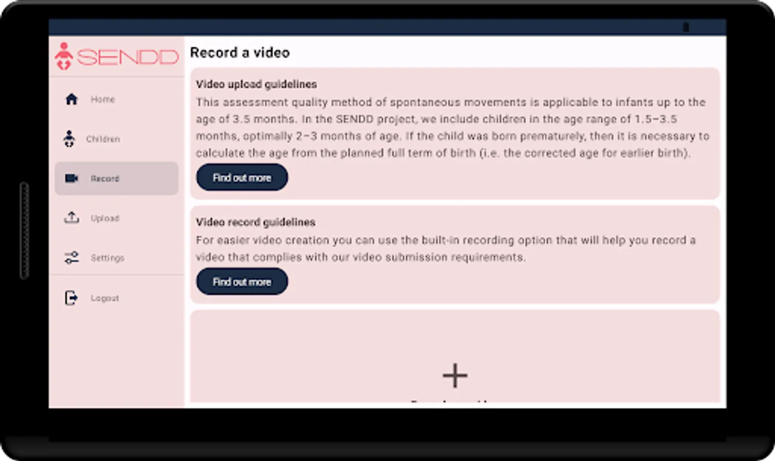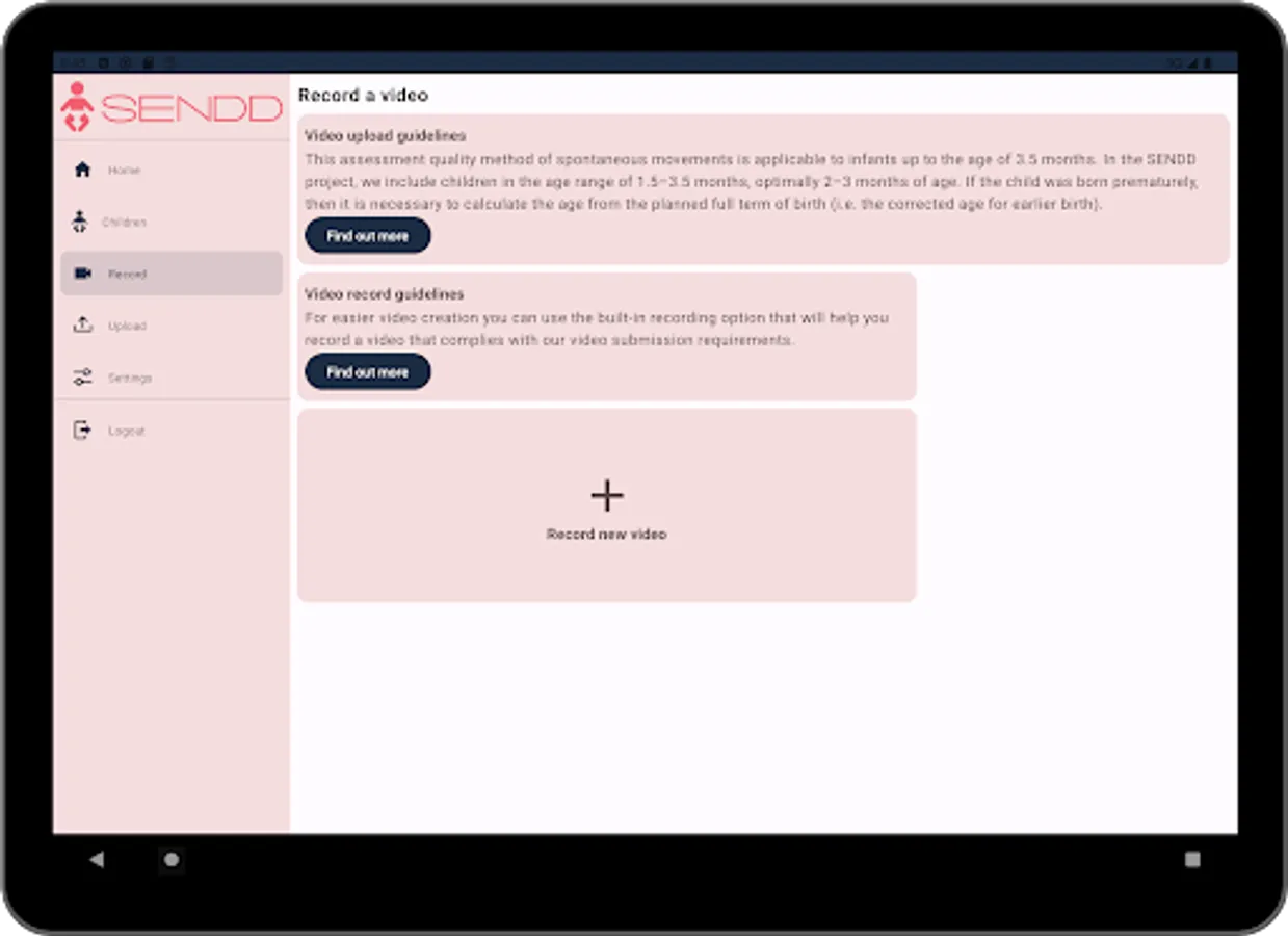 In the SENDD project, we include children in the age range of 1.5-3.5 months, optimally 2-3 months of age. If you are interested in participating by voluntarily providing a video of your child’s fidgeting and receiving a free assessment of the quality of spontaneous movements, you should use our SENDD Mobile Application or web application available on www.sendd.eu.