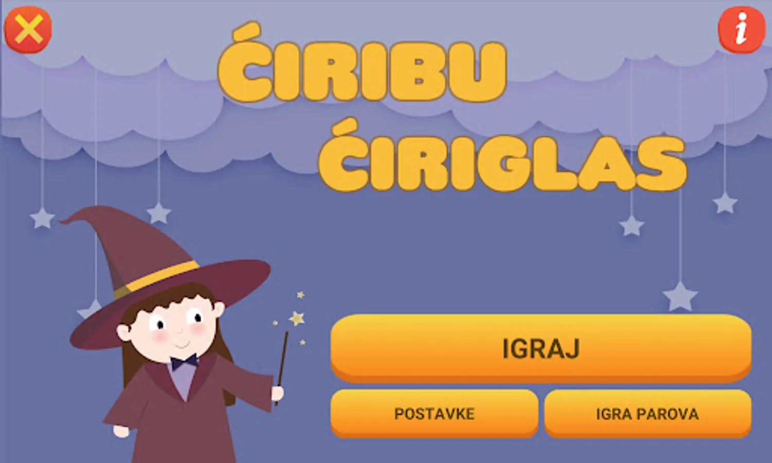The Ćiribu Ćiriglas application is intended for children of all ages to encourage phonological abilities, auditory discrimination, (pre)skills in reading and writing, and practicing the correct articulation of individual sounds. Adjust the app's settings depending on the skill you want to practice and let the child be the wizard who sorts the symbols according to the voice that symbol contains.