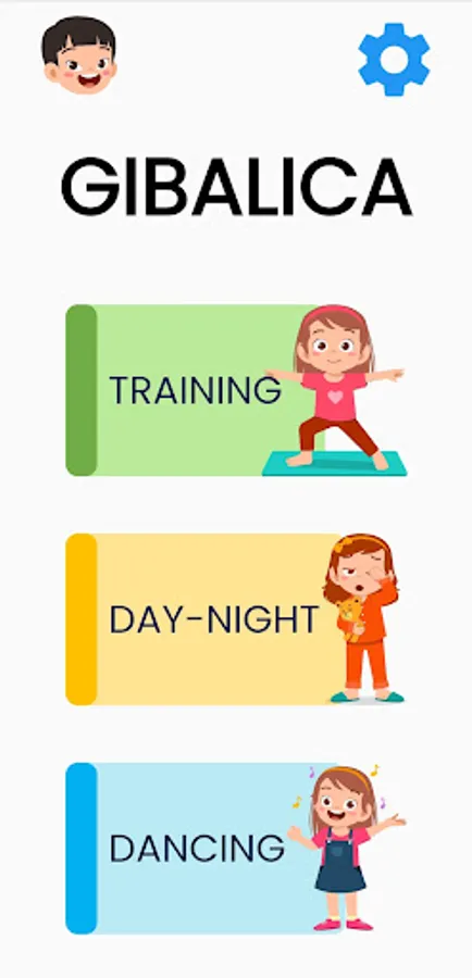 The application has three games: "Training", "Day-night" and "Dancing". Each of them uses 13 poses that are used in different contexts. Just some of them are: right hand up, left hand by the side, right leg up, etc.