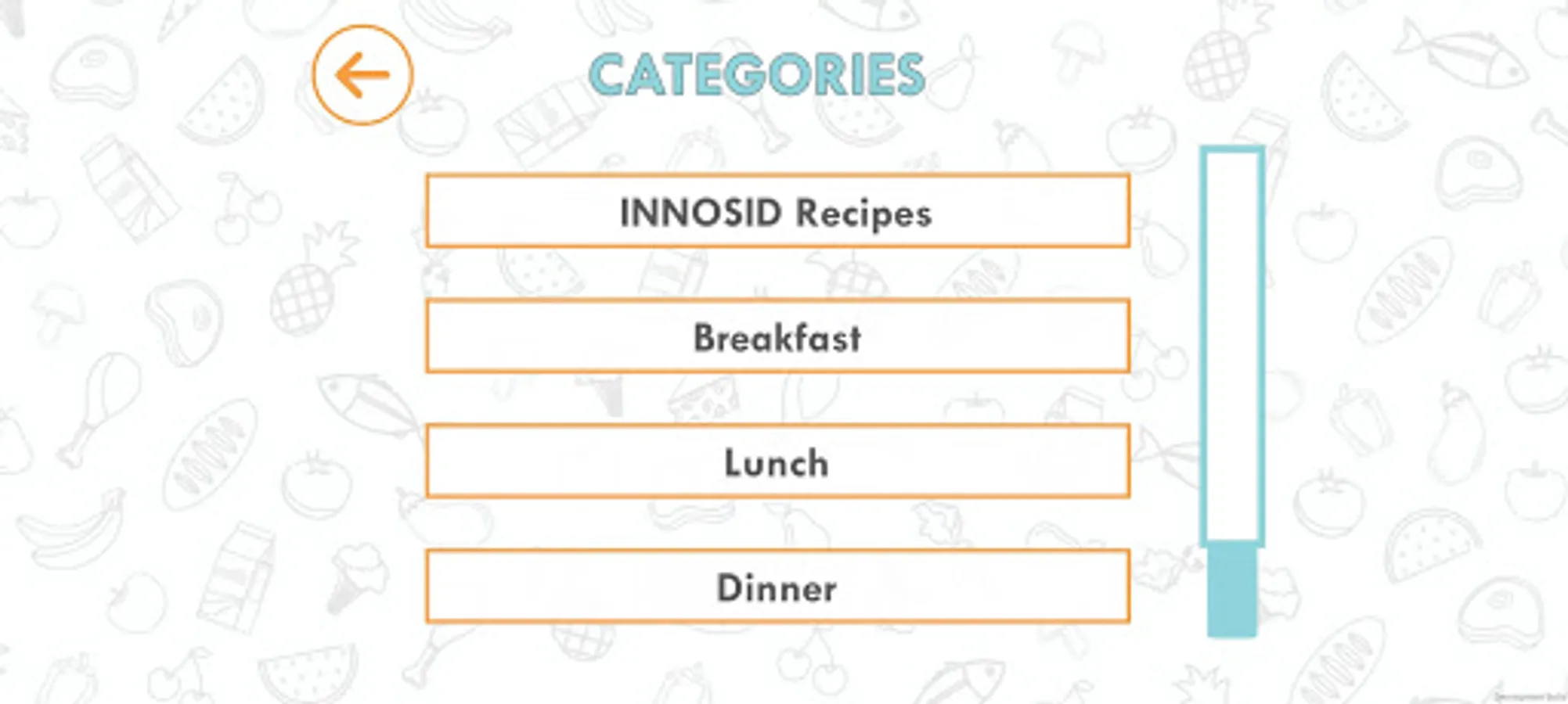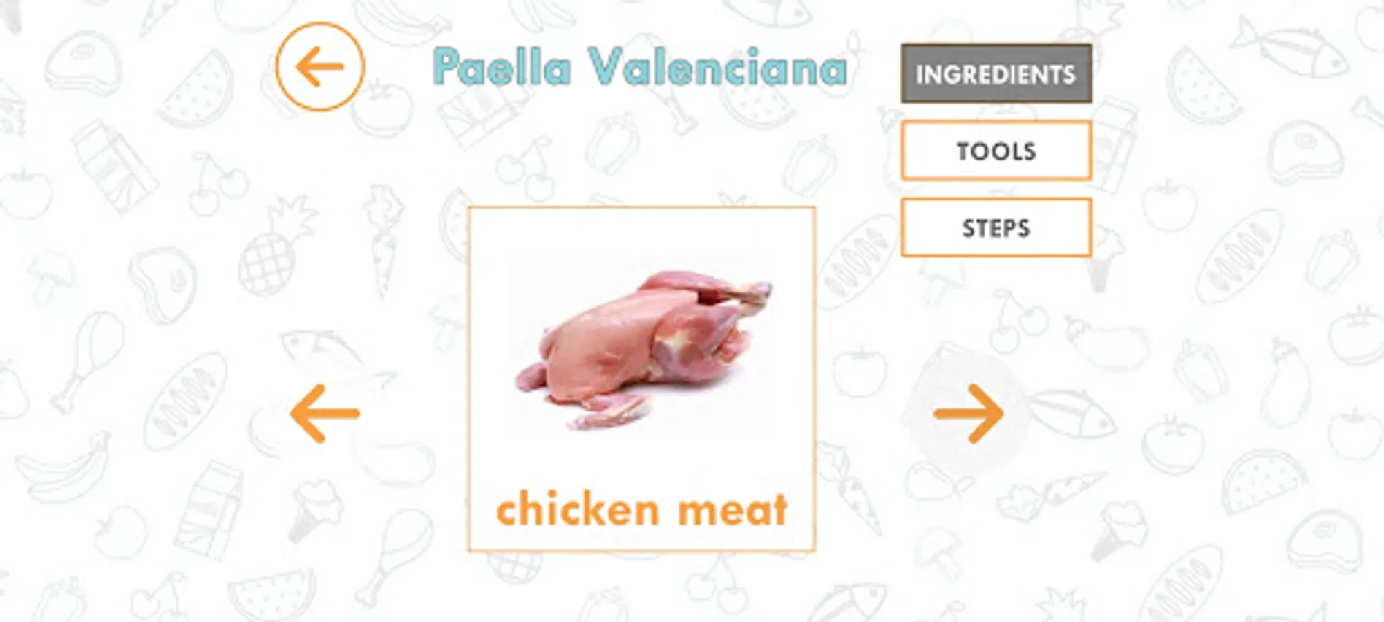 This application is designed as a virtual cookbook with the functionalities to view, create and edit the interactive recipes and to play AR -based games. The recipes contain ingredients, tools and steps that include actions with detailed descriptions of the requirements for cooking the meal. The symbols used for the ingredients, tools and steps can be selected from the existing ones, device's gallery or can be photographed.
