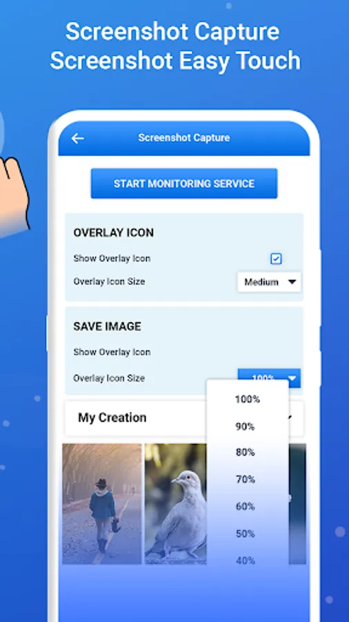 You can take the screenshot easily with one touch on the screen. Capture the screen in several apps such as games, wallpapers or any type of apps or videos.