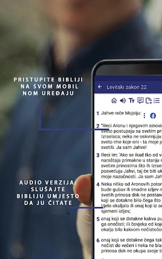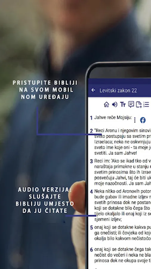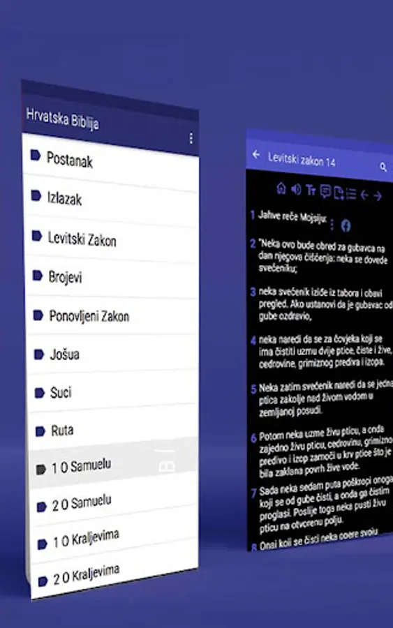 The best application with the Bible in the Croatian language for all users who speak the Croatian language. It has a modern, adaptable design and is easy to use. Save your favorite lines/verses and share them with your friends. With this application, you always have the Bible with you as a book or audio version, even when you are not connected to the network.
