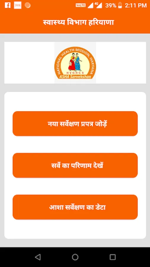 In view of COVID-19 pandemic situation in the State, NHM Haryana has assigned the Hercules Task of Door to Door COVID-19 Survey to ASHA w.e.f. 10th April 2020 to identify the High Risk Cases (i.e. Individuals more than 60 years of age, High Risk Pregnant Women, Patients suffering with Diabetic, Hypertension, Heart Diseases, Cancer, TB, Kidney, Asthma, and any other Chronic Disease), Influenza Like Illness (ILI) Cases, Symptomatic Pneumonia Cases with Breathing Problems. To ease the task, ASHA Sarvekshan App was designed & developed in house by the NHM Haryana for Door-to-Door COVID-19 Survey.