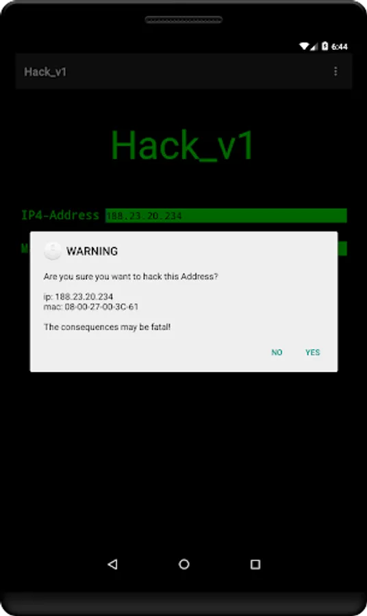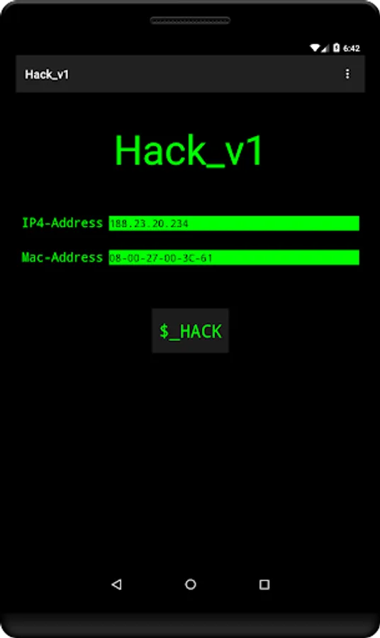 Prank your friends into thinking, you are hacking their IP/MAC address. Simply enter some valid IP-address and/or a valid MAC-address, tap the "$_hack" button and let the magic happen.