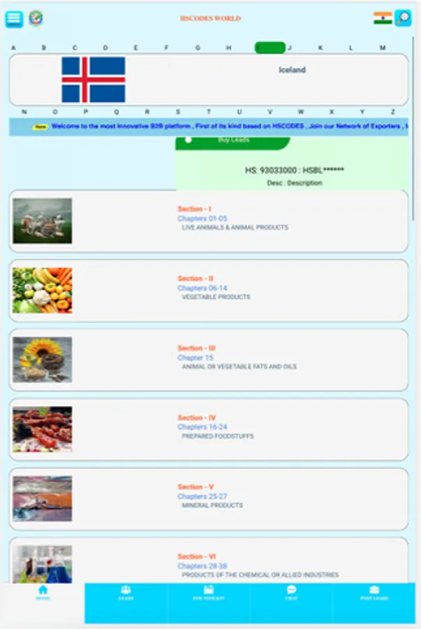 • Users can get connect globally with their choice of products precisely using HSCODES based on country.