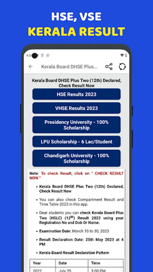 Students who have appeared for the Higher Secondary Examination in Kerala in various streams such as Science, Commerce, and Arts can use this app to check their Kerala Plus Two Result 2024.