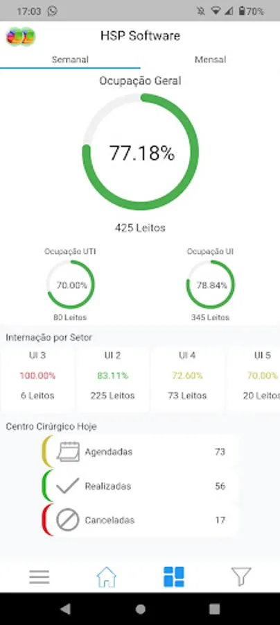 This is the HSP platform app, hospital intelligence! Monitor hospital occupancy and care areas in real time. Have in the palm of your hand the daily projection of each sector: Emergency/PS, SADT, Outpatient, Inpatient Units, ICUs and Surgical Center!