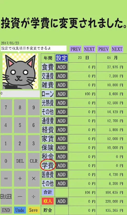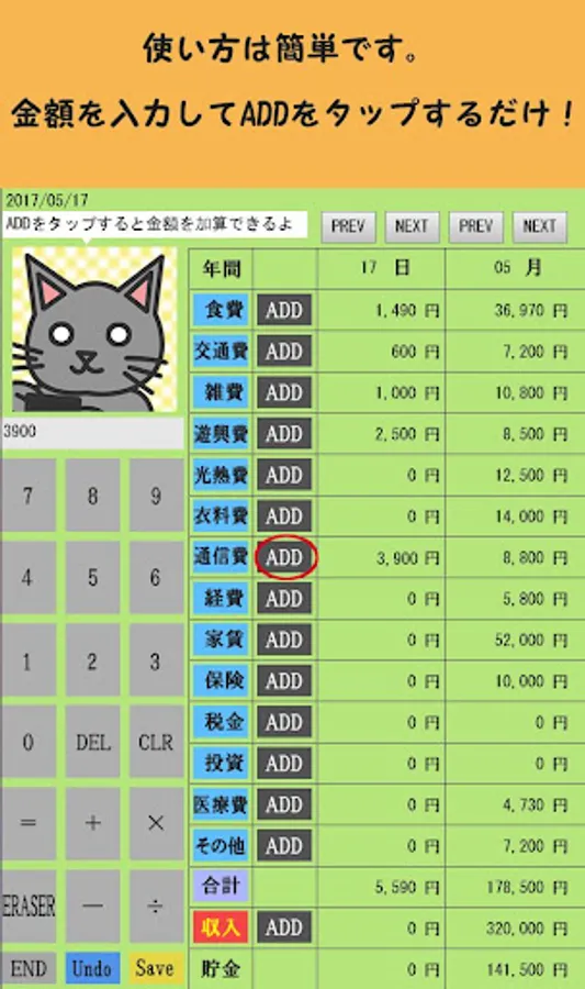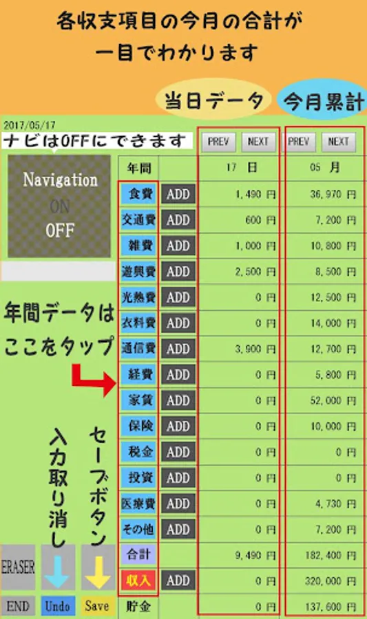 The balance of the day of the balance of payments and the month can be seen on a single screen.