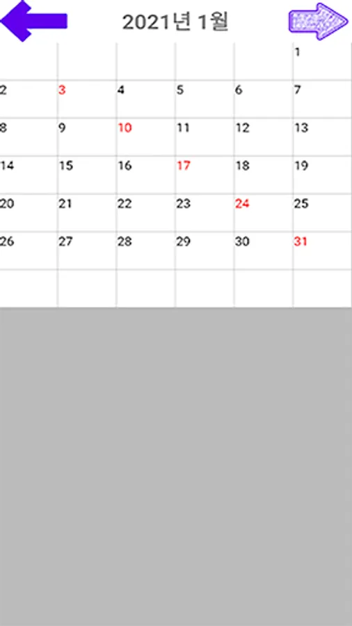 Pressing the left arrow moves to the previous month, pressing the right arrow moves to the next month.