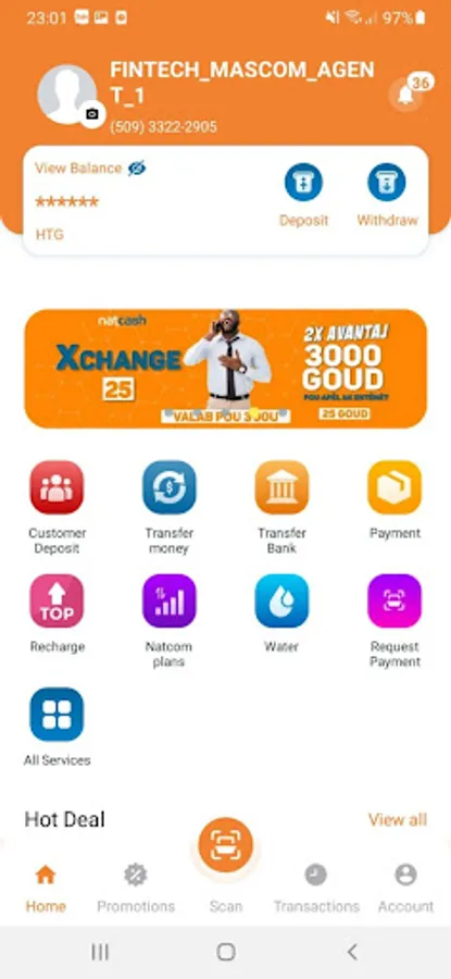 The user will be able to view promotional content in the Natcash Agent App as to see what is new in the Natcash ecosystem.