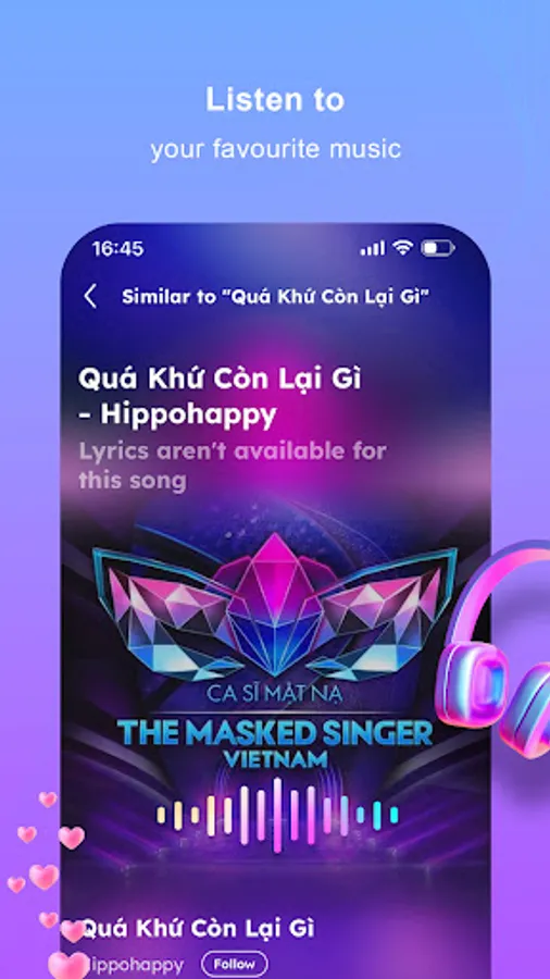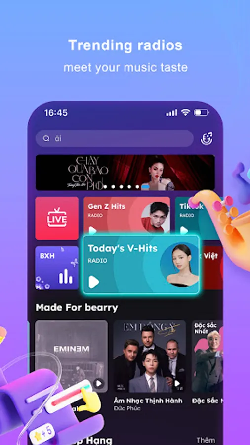 1. Easily search and listen to your favorite songs, artists, and playlists, including V-Pop, US-UK, and K-Pop.