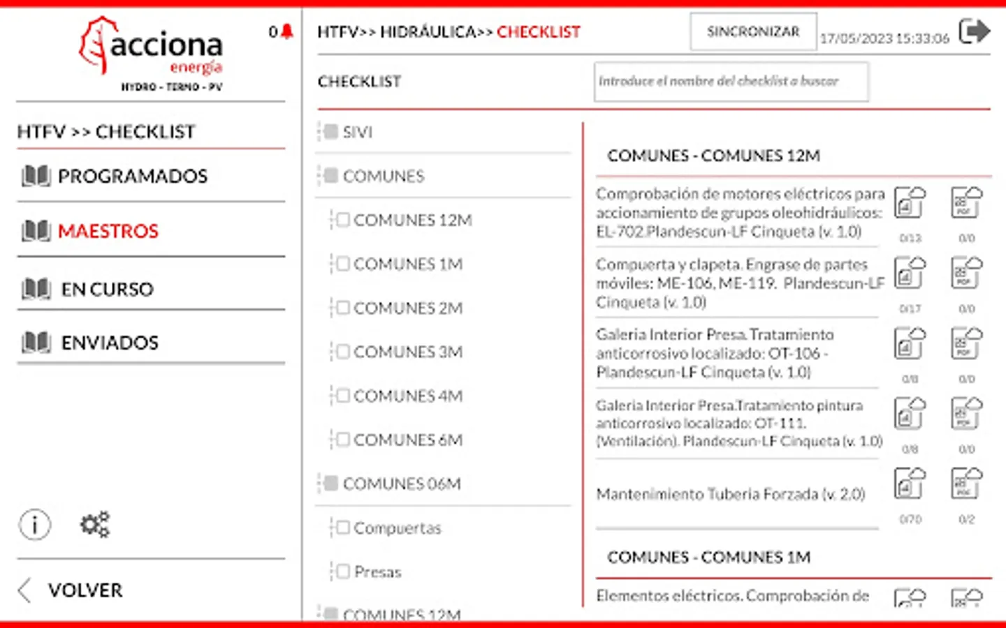 Thanks to this application, users can perform preventive actions on Hydraulic, Thermal and Photovoltaic technology machines (step-by-step operations and checklist).