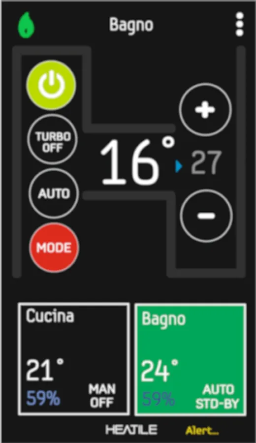 The application can only be used in conjunction with the temperature control for Heatile underfloor heating. It allows to check the operation of the system and to modify the regulation characteristics