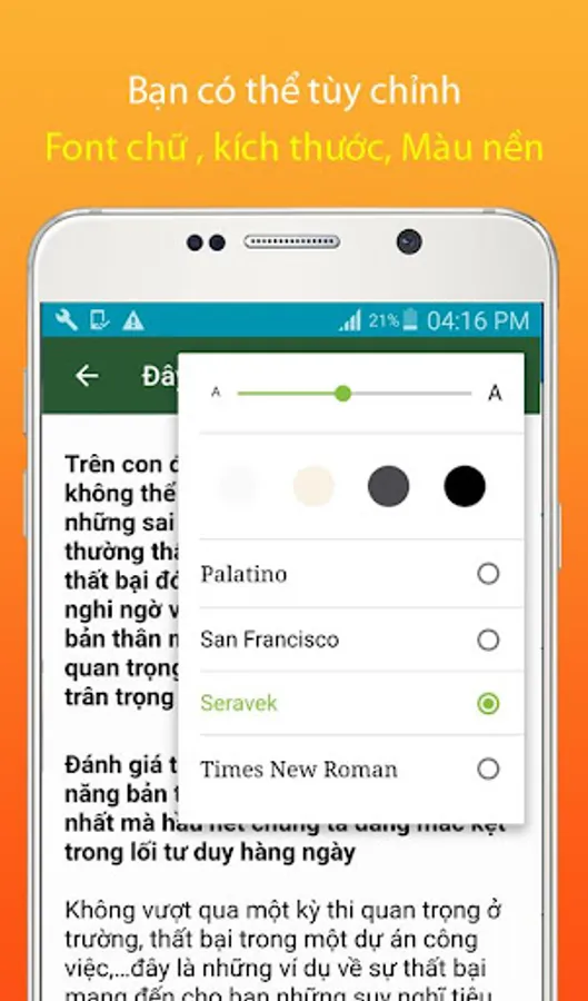 The application has options to personalize, you choose the form of font color, font size, background color ... best suits you.