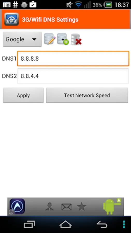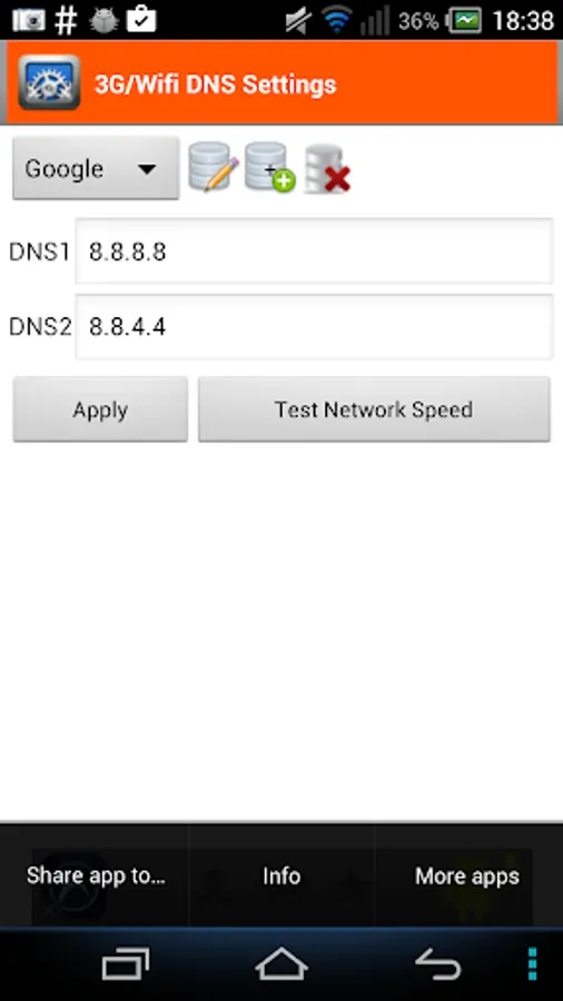 3G/4G/Wifi DNS Settings is used to change your DNS of 3G/Wifi networks using some free DNS servers. It helps you access websites that were blocked by your provider. This app works perfectly on Android 3.x, 4.x, 5.x and 6.x